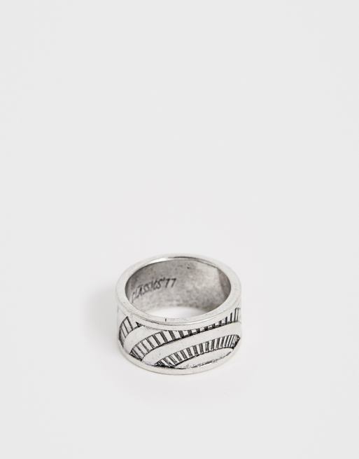 Classics 77 Bague Avec Large Anneau Grave Argente