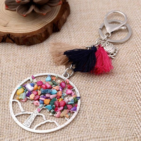 Acheter La Vie Des Arbres Tassel Porte Cles Pendentif Arbre De Vie Cristal Gemstone Chakra Bijoux Porte Cles Bague Porte Cles Porte Cles Porte Cles De
