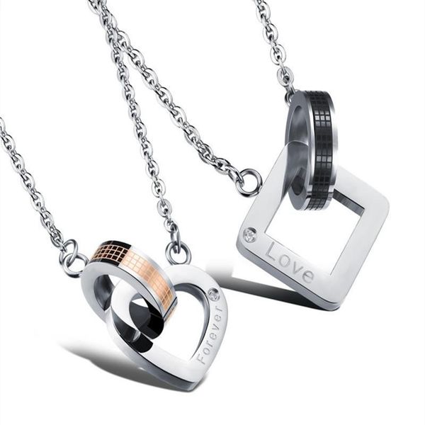 Acheter Bague De Mode Pendentif Collier En Acier Inoxydable Love Forever Coeur Et Couple Couple Collier Ensemble Cadeau Saint Valentin De 2 46 Du