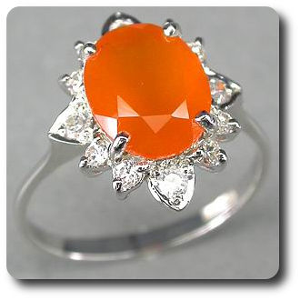 Magnifique Imposante Bague Opale De Feu Cz Et Argent 925